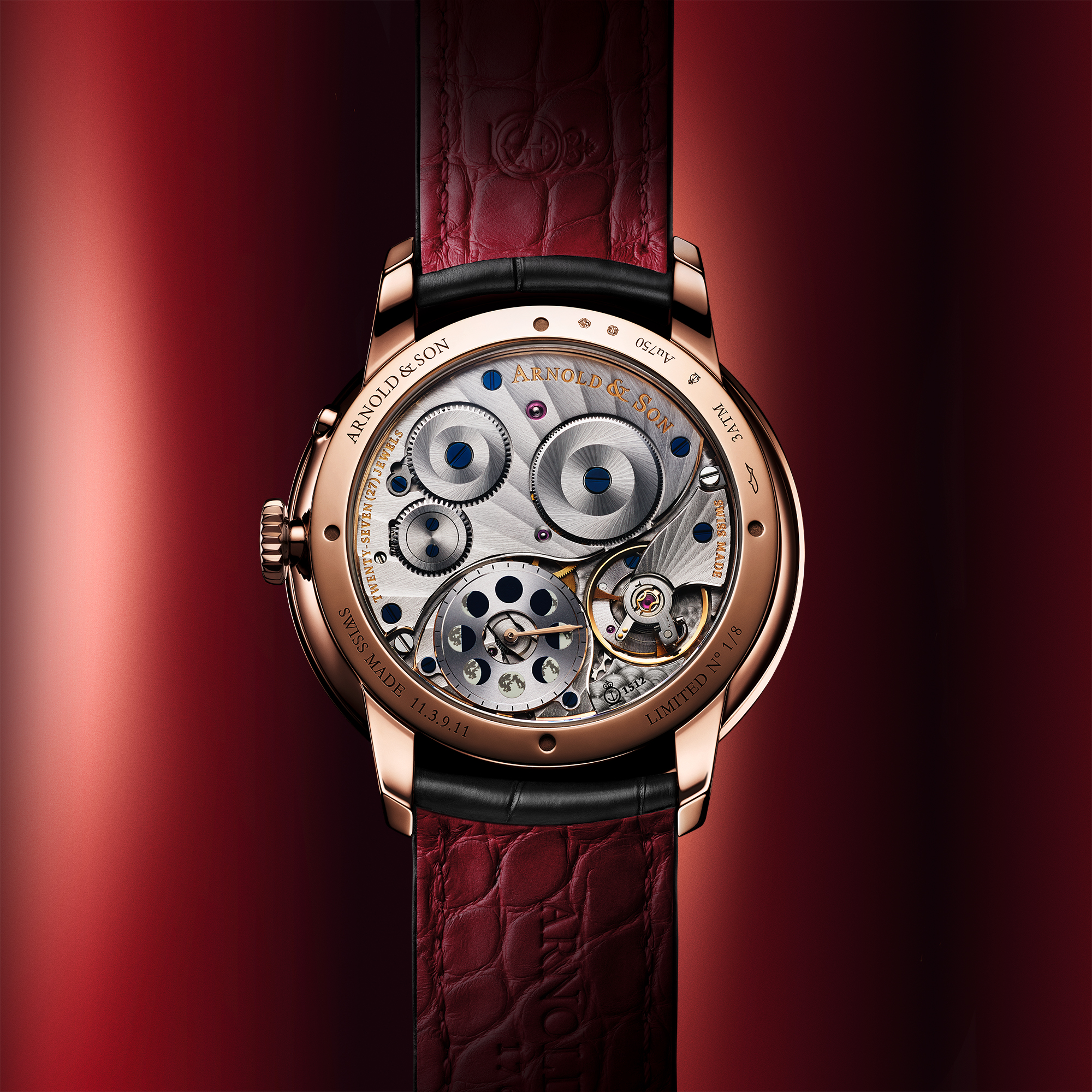 As for all Arnold & Son movements, the A&S1512 calibre is developed, manufactured, decorated, assembled, adjusted and cased up at the Chaux-de-Fonds manufacture. Equipped with two barrels and beating at 3 Hz, it gives the Perpetual Moon 41.5 Red Gold “Year of the Horse” a generous power reserve of 90 hours.