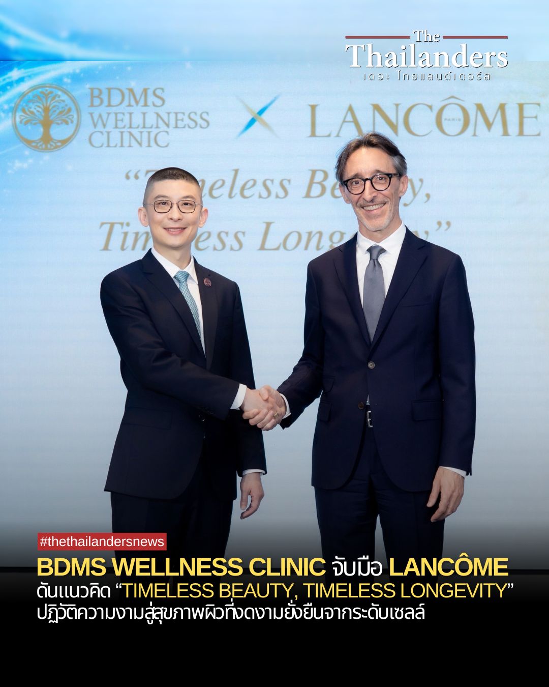 BDMS Wellness Clinic, the preventive healthcare center under Bangkok Dusit Medical Services Public Company Limited, has partnered with Lancôme, the French luxury beauty brand under L’Oréal (Thailand), to introduce “Timeless Beauty, Timeless Longevity”—a new approach that redefines beauty from external care to long-term skin health from within.