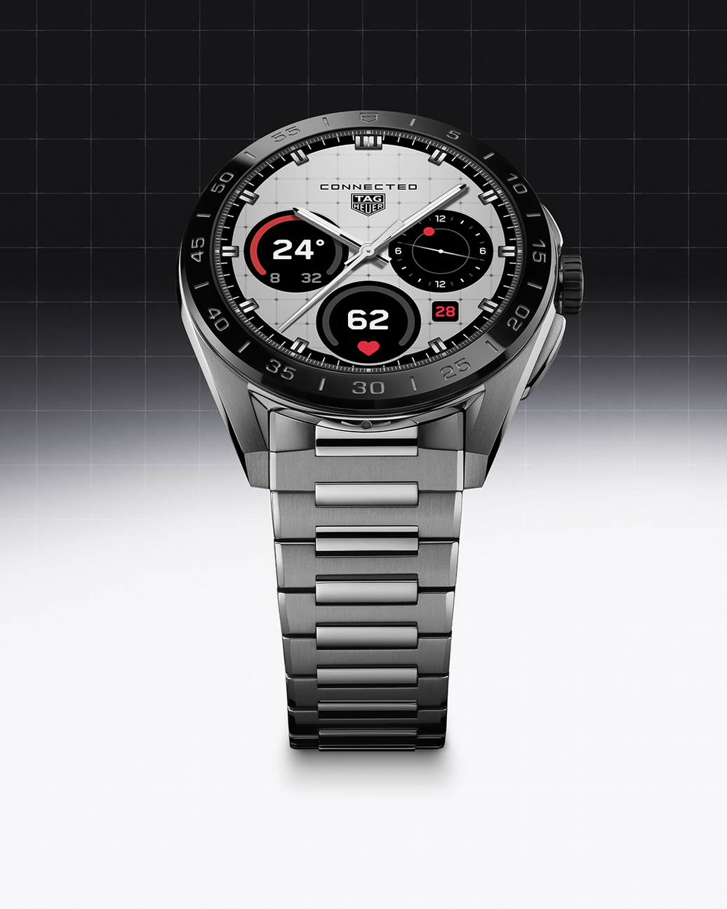 TAG Heuer introduces the Connected Calibre E5, its most advanced smartwatch yet. Evolving over 10 years, it fuses Swiss watchmaking precision with digital innovation. Available in 45 mm and 40 mm, it features the in-house TAG Heuer OS for a faster, more intuitive experience. Designed for running and golf, it offers dual-band GNSS for precise tracking and smart golf functions like Auto Zoom and Auto Scoring. More than a smartwatch, it embodies luxury, performance, and innovation in every moment.